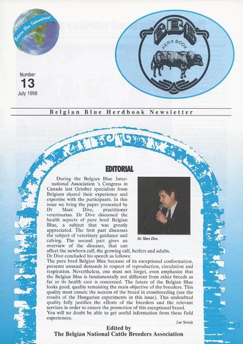 Tento magazín vydávala v letech 1995 - 2000 v tištěné podobě v anglickém jazyce belgická plemenná kniha. Časopis obsahoval nejrůznější informace týkající se plemene belgické modrobílé - výsledky z výstav, informace z oblasti šlechtění, novinky z nabídek inseminačních společností, informace ze světa atd.Kliknutím na náhled magazínu zobrazíte větší fotku.